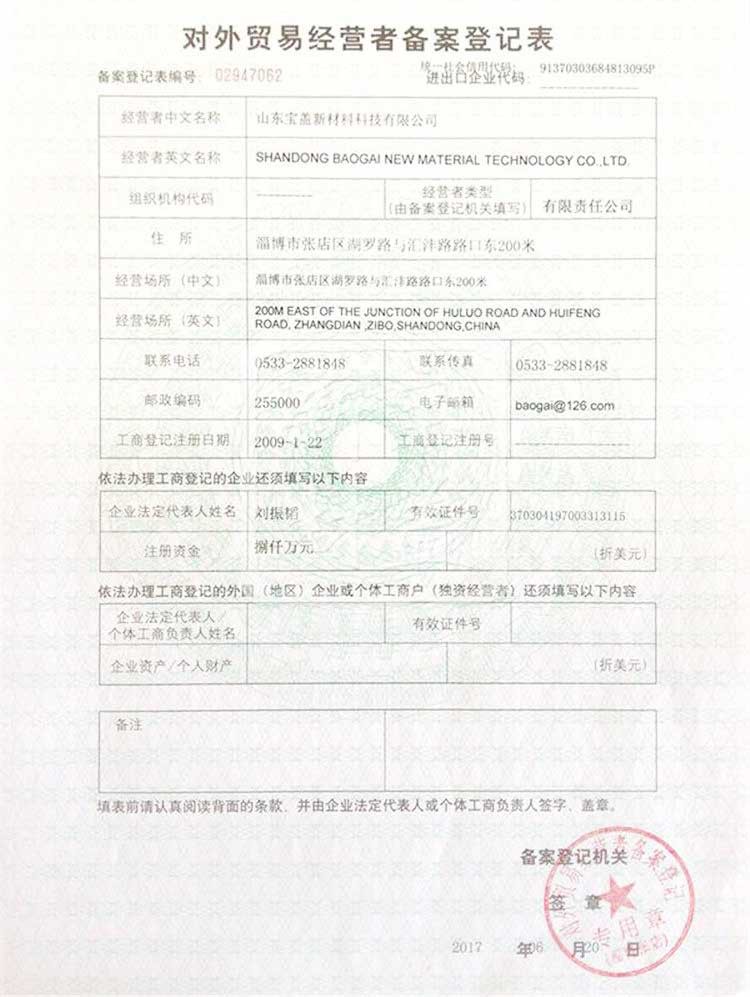 對外貿易經營者備案登記表